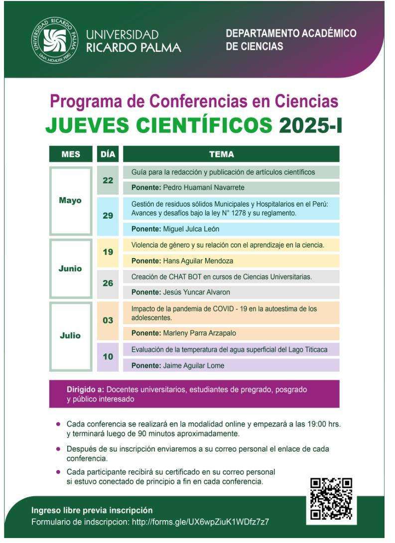 El Departamento Académico de Ciencias de la Universidad Ricardo Palma, está integrado a la facultad de Ciencias Biológicas, de acuerdo al Estatuto de la universidad, Artículo 18, y agrupa a docentes de las áreas de: Matemáticas, Física, Química, Estadística, Biología y Veterinaria; da servicio académico a las distintas escuelas profesionales, a su requerimiento de docentes especialistas y de calidad, con capacidades de investigación, de preparación de estrategias pedagógicas y de vinculación con el entorno y medio ambiente.