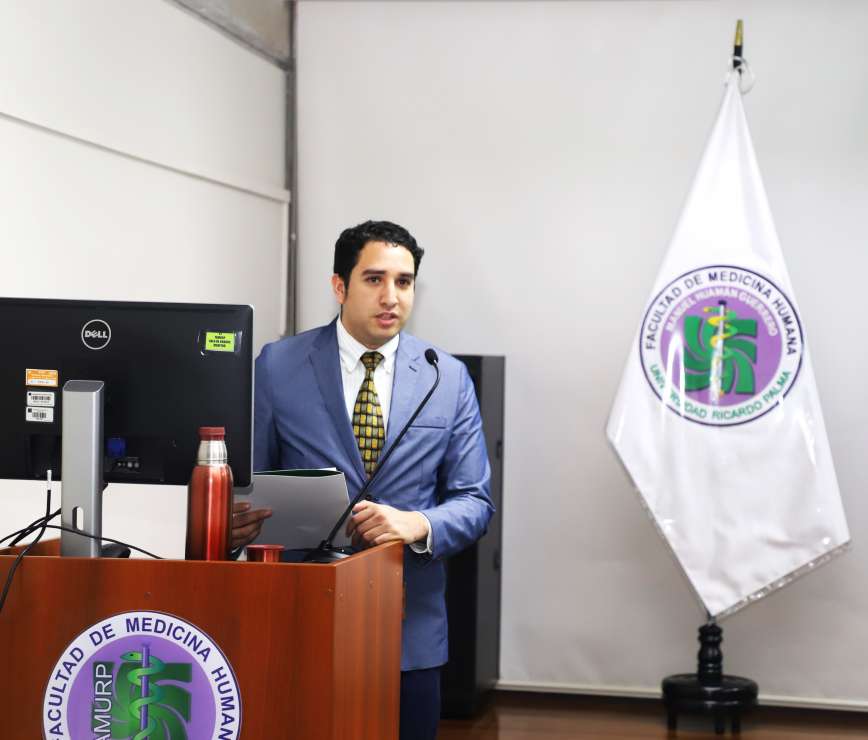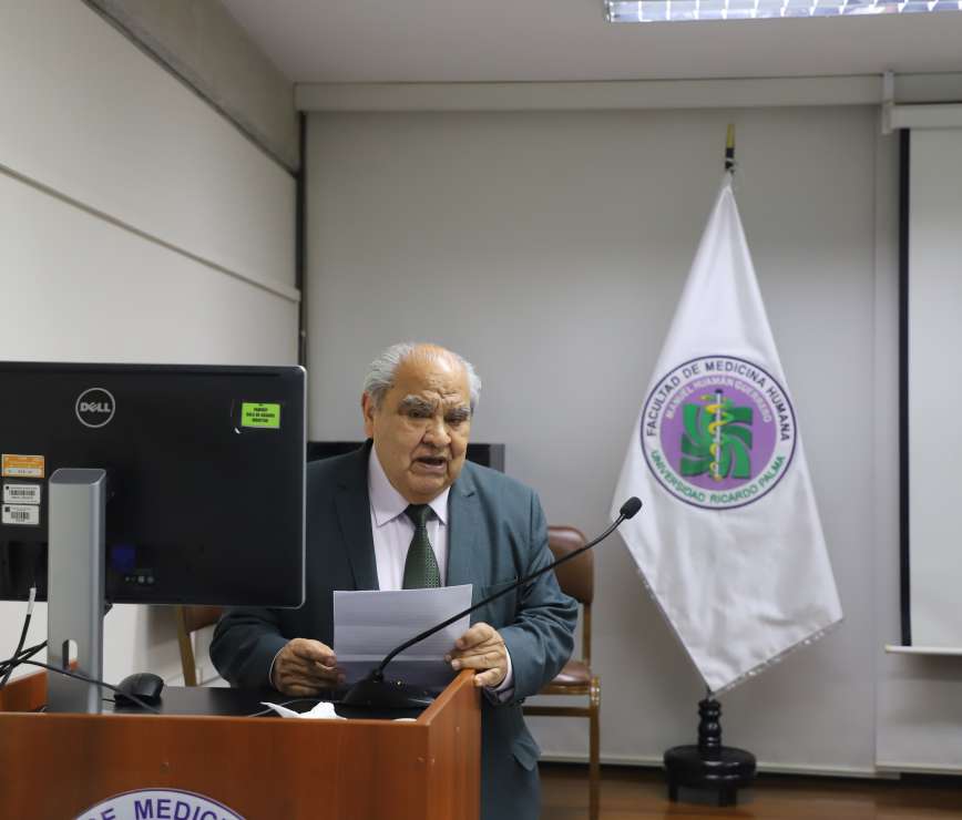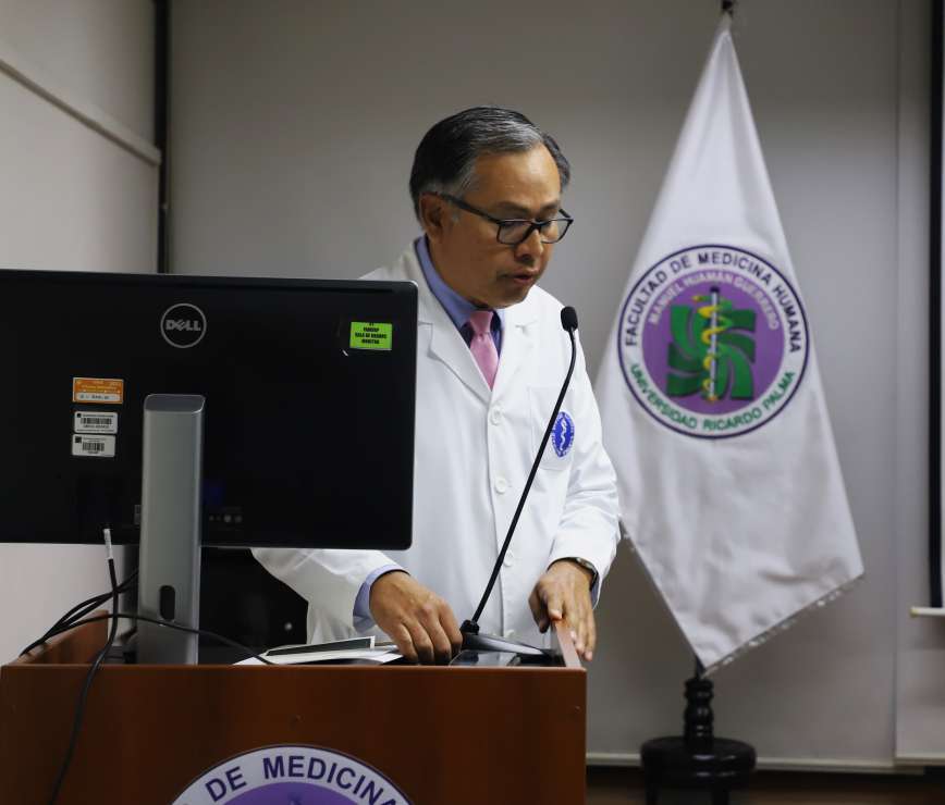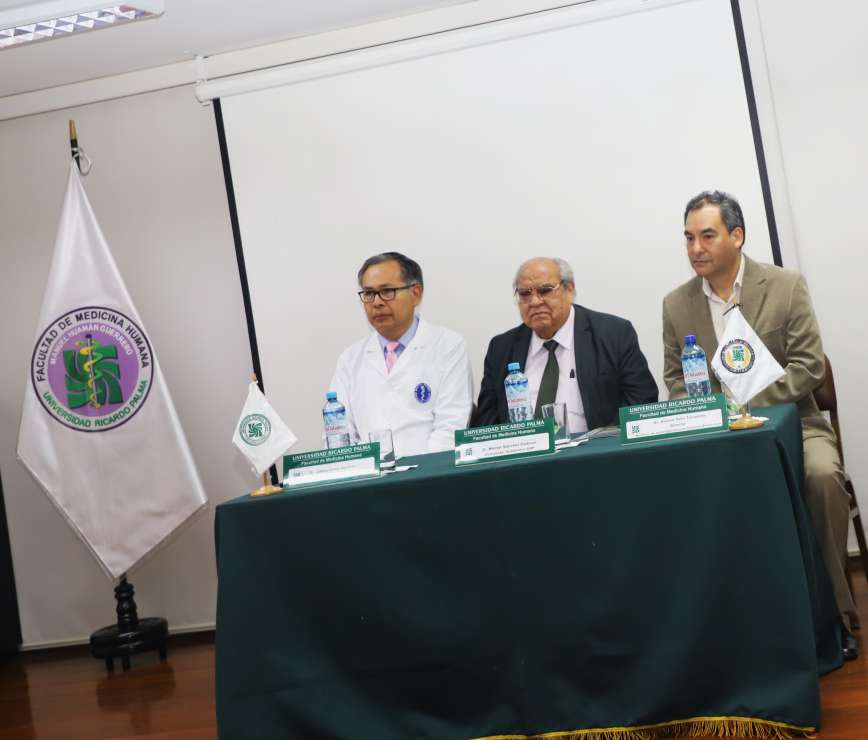 Participaron en el acto el Dr. Héctor Hugo Sánchez Carlessi, Vicerrector Académico, el Dr. Jaime Lama Valdivia, Decano de la Facultad de Medicina Humana “Manuel Huamán Guerrero”, el Dr. Alonso Soto Tarazona, Director del Instituto de Investigaciones en Ciencias Biomédicas (INICIB), autoridades académicas, docentes y estudiantes.