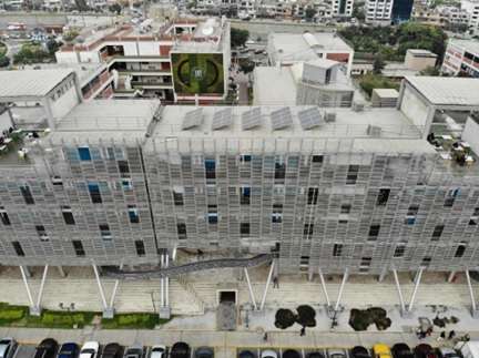 Foto de paneles solares ubicado en techo del aulario “Inca Roca”, campus Universidad Ricardo Palma.