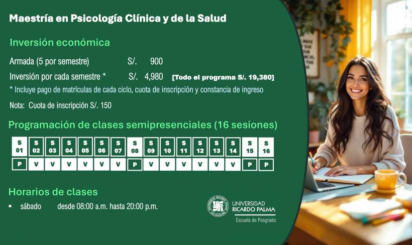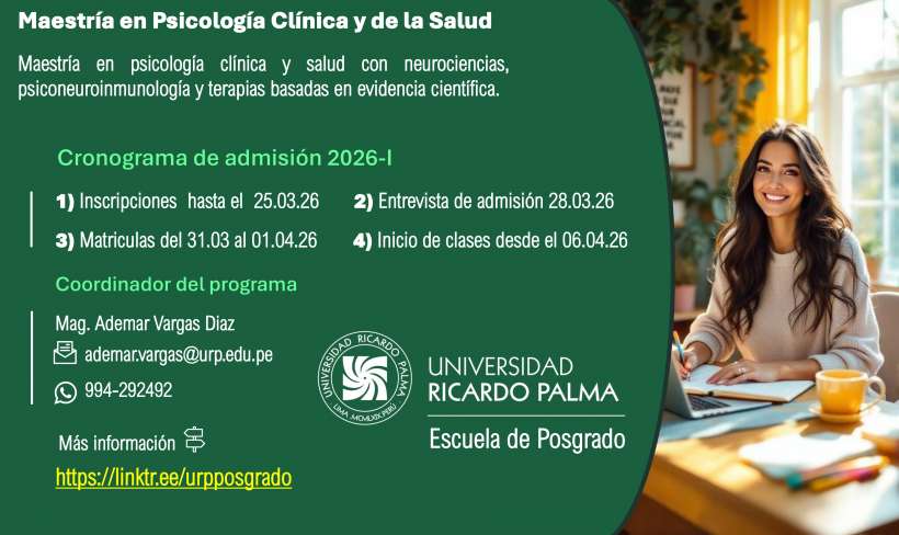 Maestría en psicología clínica y salud con neurociencias, psiconeuroinmunología y terapias basadas en evidencia científica.