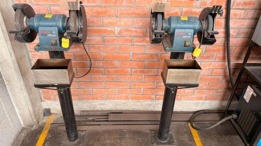 Esmeriles de Columna | En esta estación se quita material por fricción entre la pieza y la piedra que se utilice, se cuenta con 2 piedras una de desbaste y la otra de acabado. |