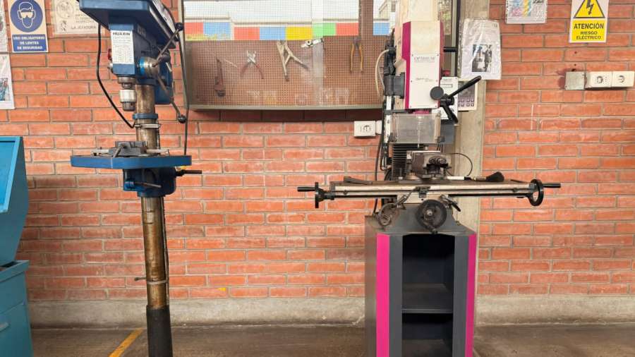 Taladro de Columna | En esta estación se realizan los agujeros o perforaciones a piezas ya preparadas en el cual se ha realizado un trazado el cual permite tener una ubicación exacta de donde se va realizar el agujero. |